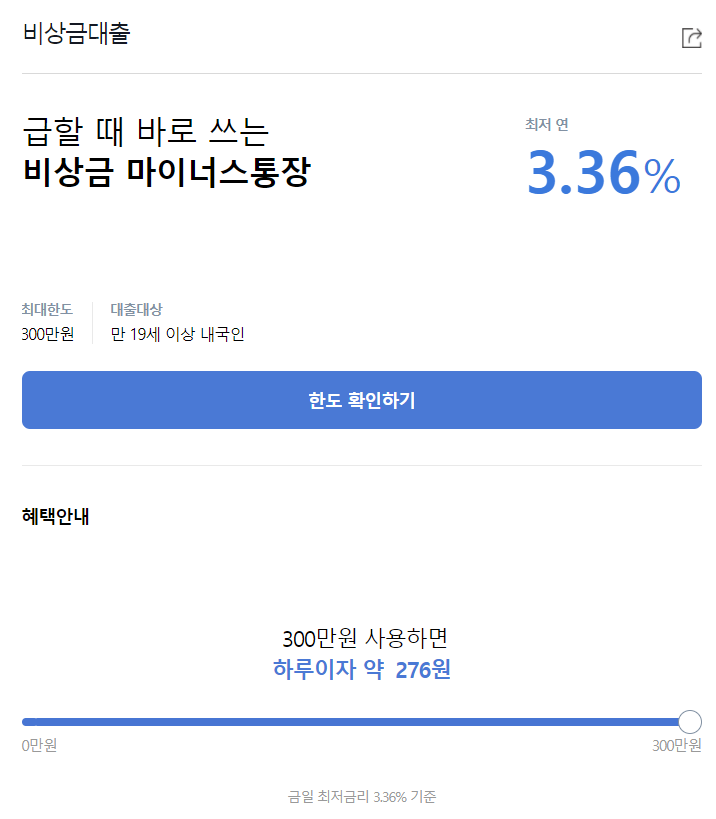 당연히 그냥 받을 수는 없고 케이뱅크에 입출금 통장이 있어야 합니다. 입출금 통장이 있다면 바로 대출이 가능한데요. 요즘 트렌드에 맞게 대출을 신청하고 나서 대출 확정까지 몇 분 안에 바로 된다는 점이 대박이네요. 대출 최대 금액은 300만원이며 마이너스 통장으로 대출을 받을 수 있고요. (물론 신용등급에 따라 금액 차이는 있습니다)